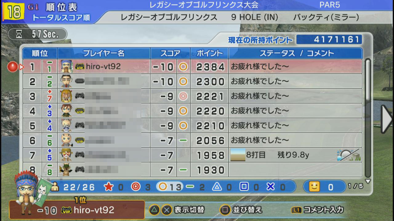 | −10 | 2384 | 1位 / 26人中 |