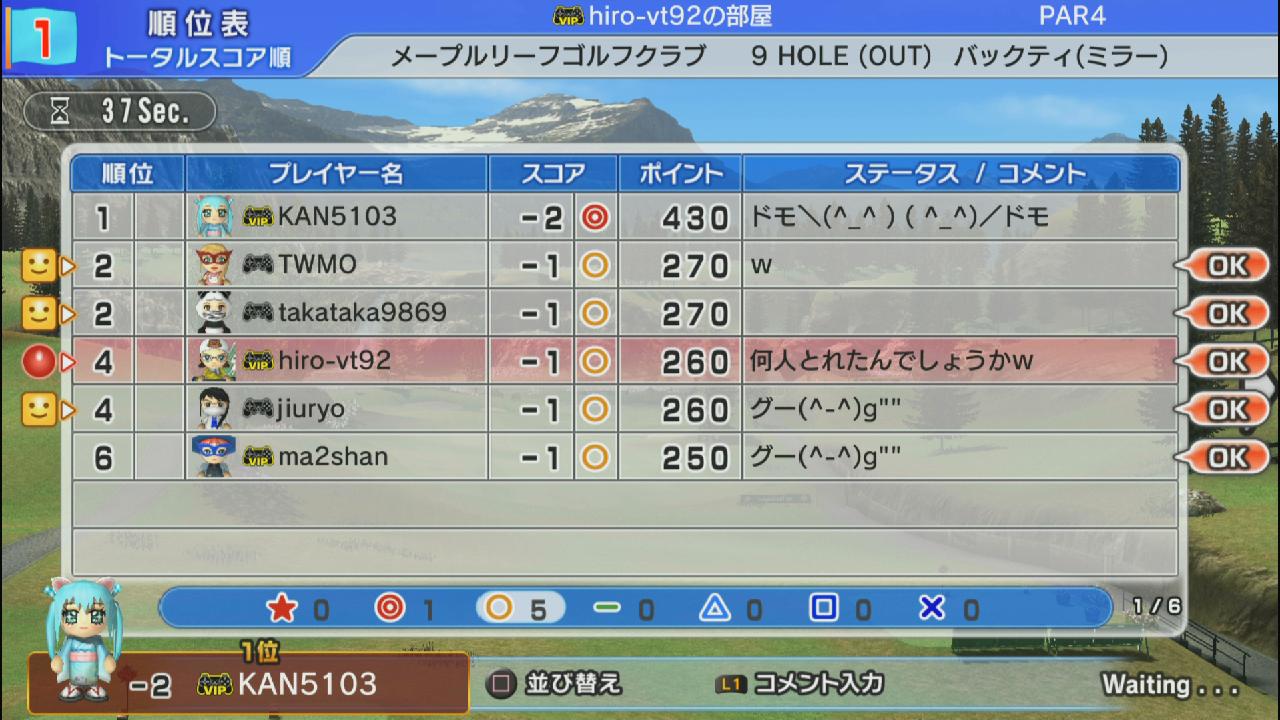 ひろうち92tトップ > みんゴル日誌 > みんゴル6 > 対戦部屋記録 2014年5月5日号