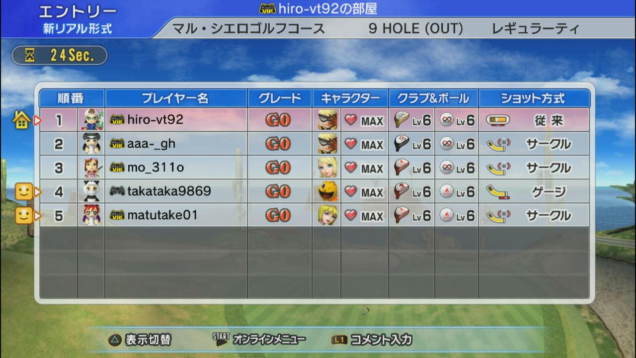 コースはハーベストのOUT9ホールで、レアキャラは禁止。