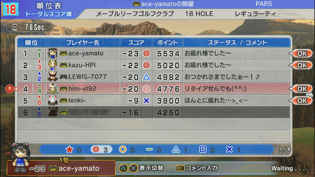 | 4位 |  | オメガ (omega123-_) | −22 | 5542 | まさかのH17でうさってボギっちゃいましたw |