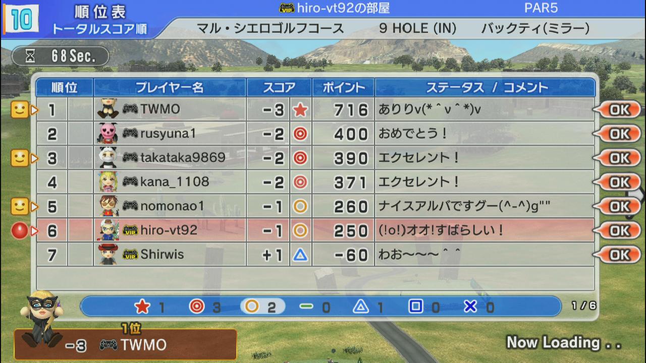 最初の3ホールでクリアしたのはながさん、リンゴントウさん、ひろうち92tの