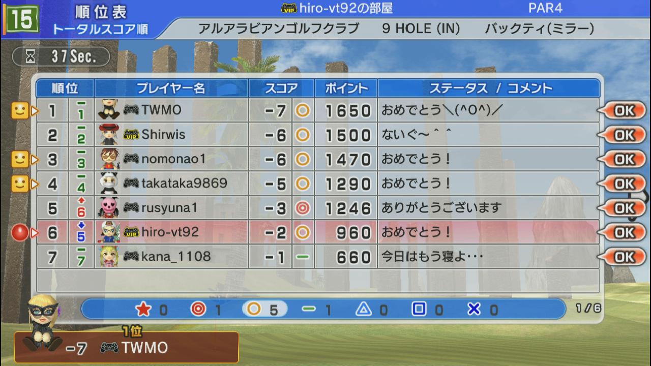 ひろうち92tトップ > みんゴル日誌 > みんゴル6 > 対戦部屋記録 2014年6月30日号