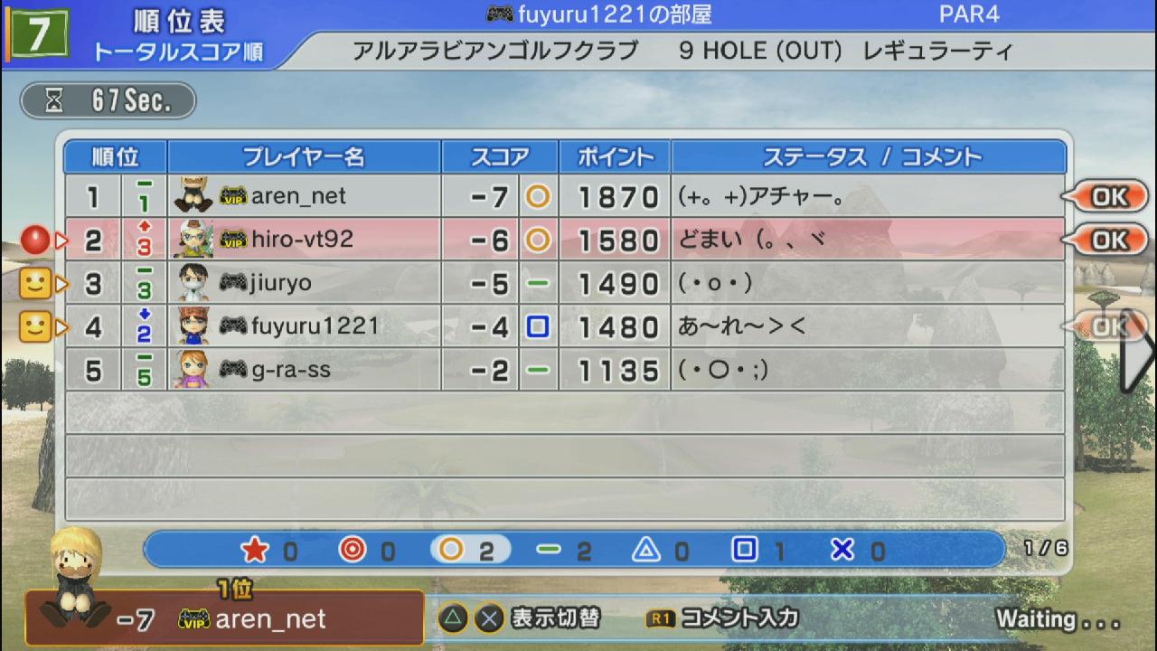 ひろうち92tトップ > みんゴル日誌 > みんゴル6 > 対戦部屋記録 2014年7月4日号