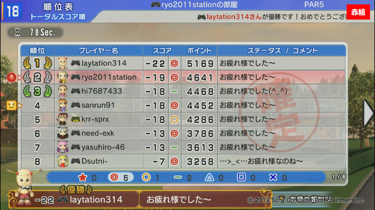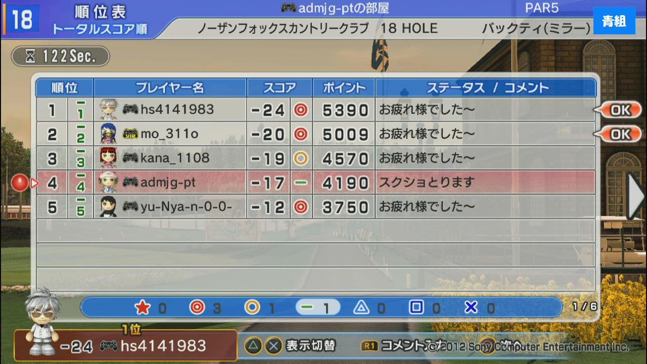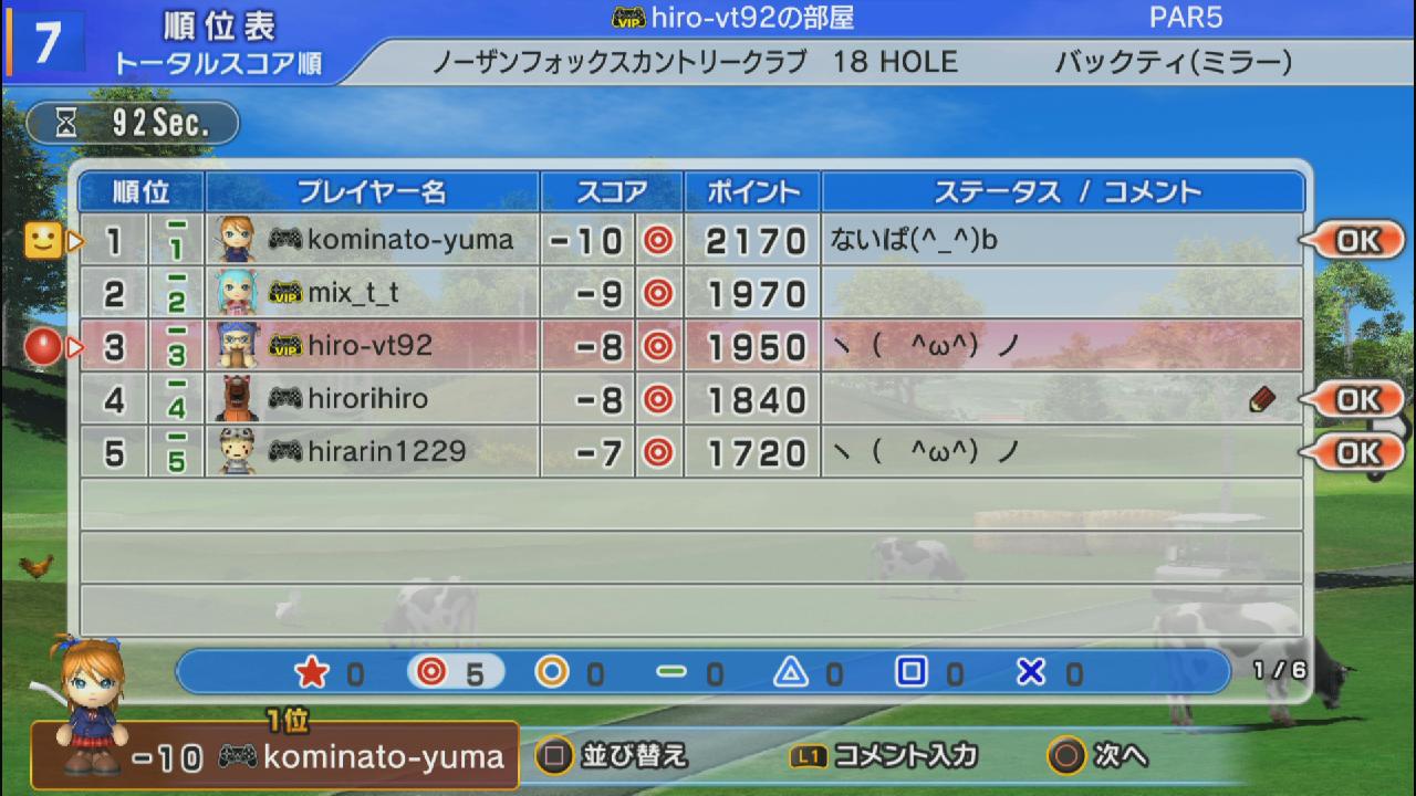 ほとんどクロスさんとミルクさん以外まともなスコアで上がっていないため、