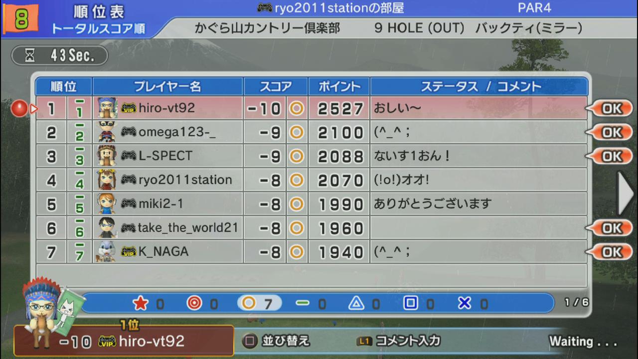 ひろうち92tトップ > みんゴル日誌 > みんゴル6 > 対戦部屋記録 2014年9月1日号