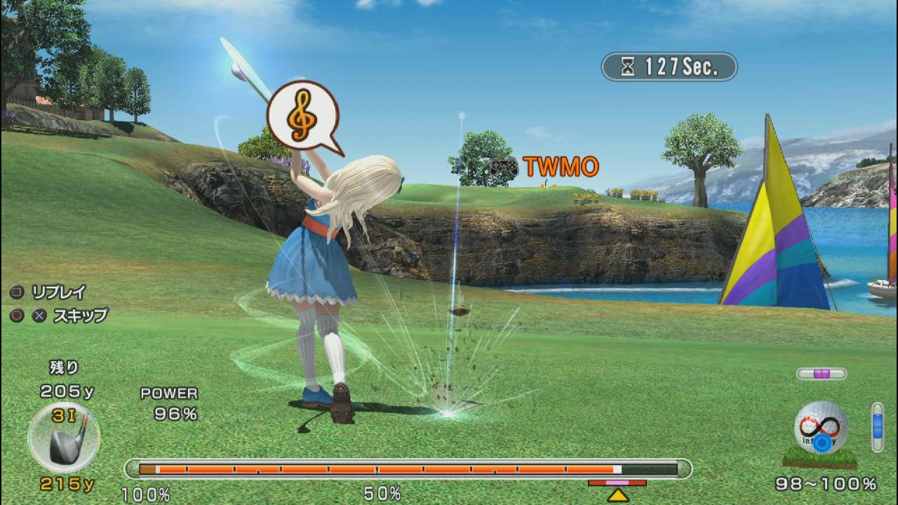 ピン位置が手前だったというのもありますが、フォローの助けを借りて思い切り飛ばして