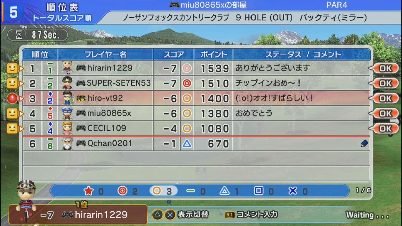 ひろうち92tトップ > みんゴル日誌 > みんゴル6 > 対戦部屋記録 2014年9月29日号