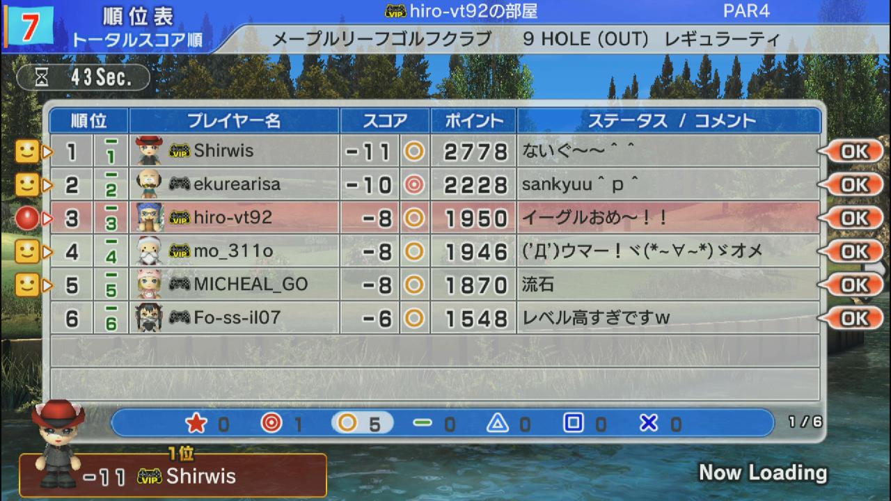 ひろうち92tトップ > みんゴル日誌 > みんゴル6 > 対戦部屋記録 2014年10月6日号