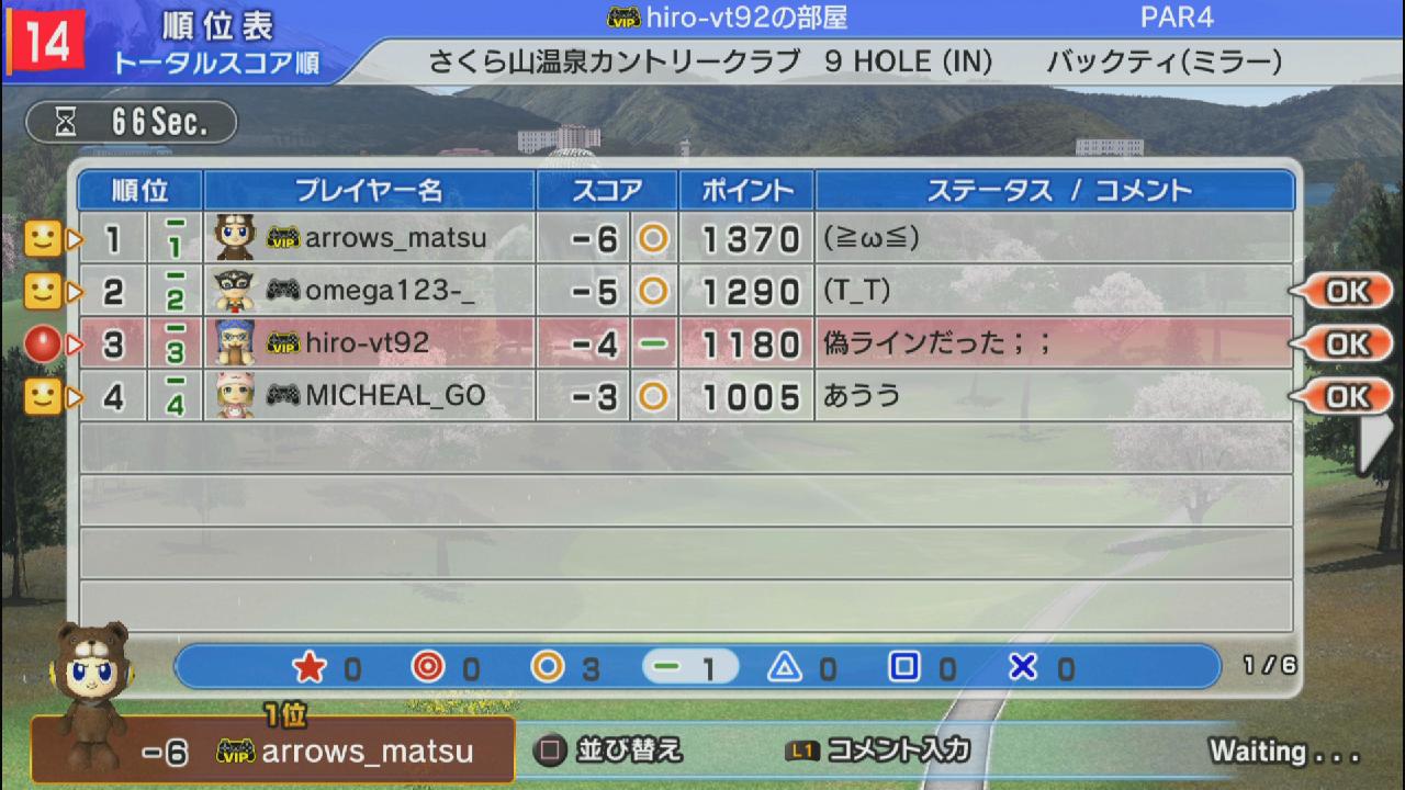 ひろうち92tトップ > みんゴル日誌 > みんゴル6 > 対戦部屋記録 2015年1月26日号