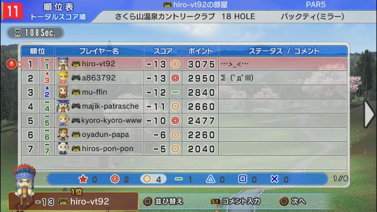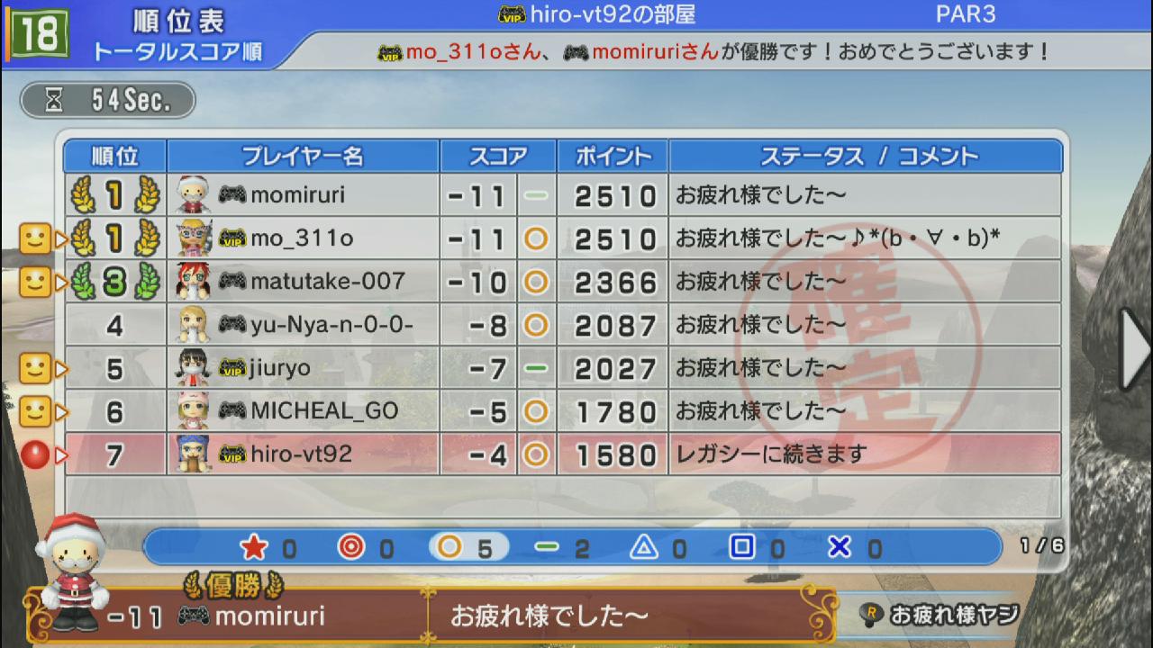 飛距離に余裕のある上級キャラたちは皆バーディの中単独のパーでした…
