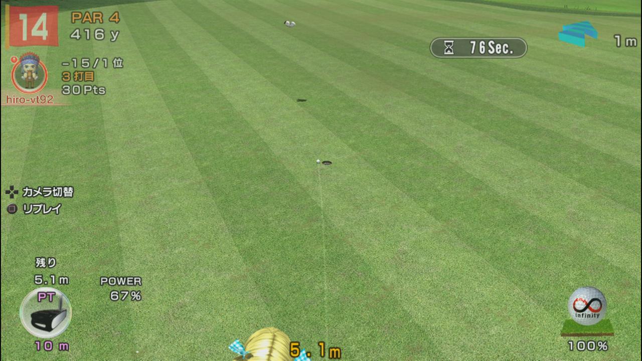 キャラは非力なナルだったのでティーショットは加減して打ち、セカンドは