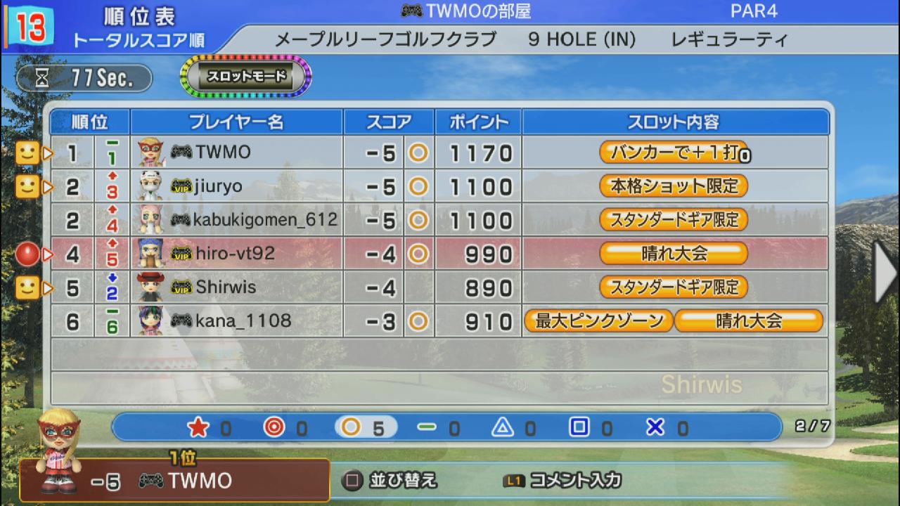 ひろうち92tトップ > みんゴル日誌 > みんゴル6 > 対戦部屋記録 2015年4月6日号