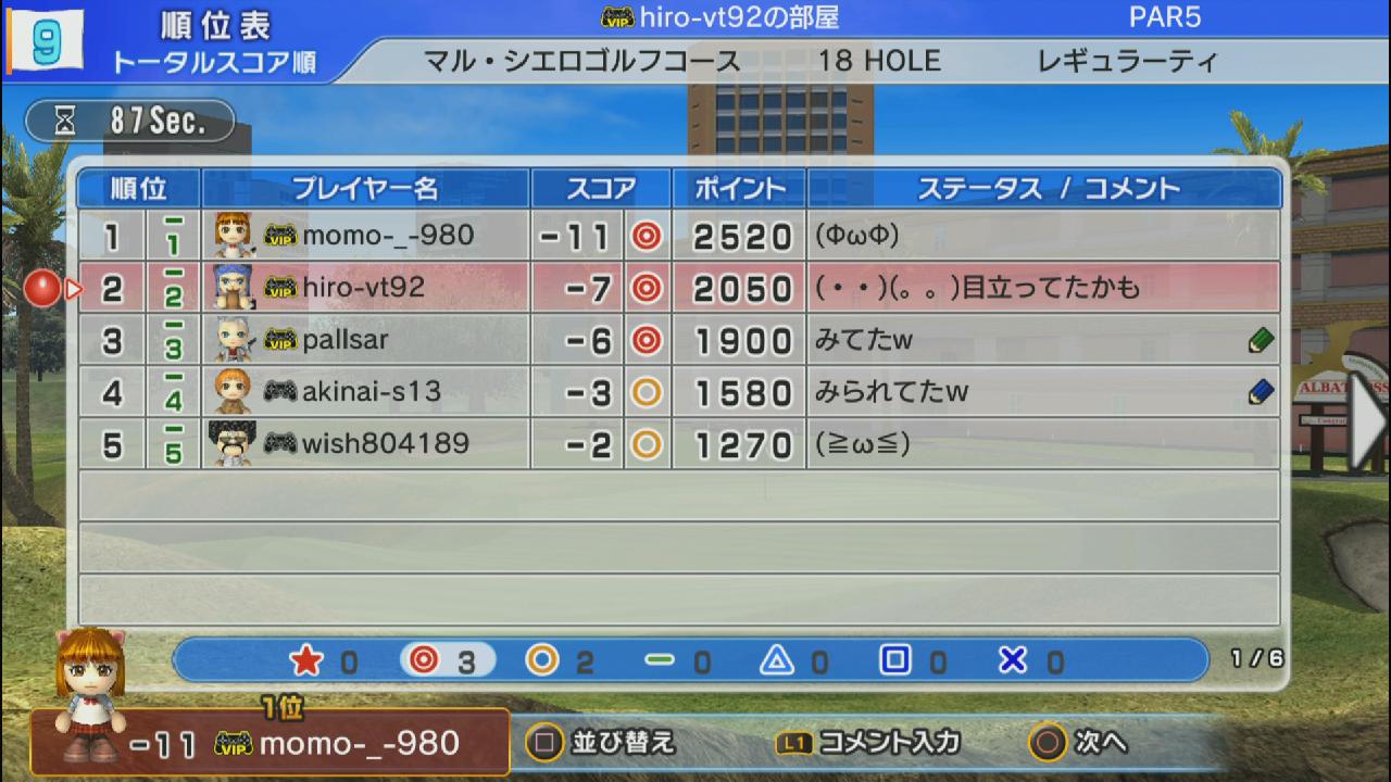 ひろうち92tトップ > みんゴル日誌 > みんゴル6 > 対戦部屋記録 2015年5月25日号