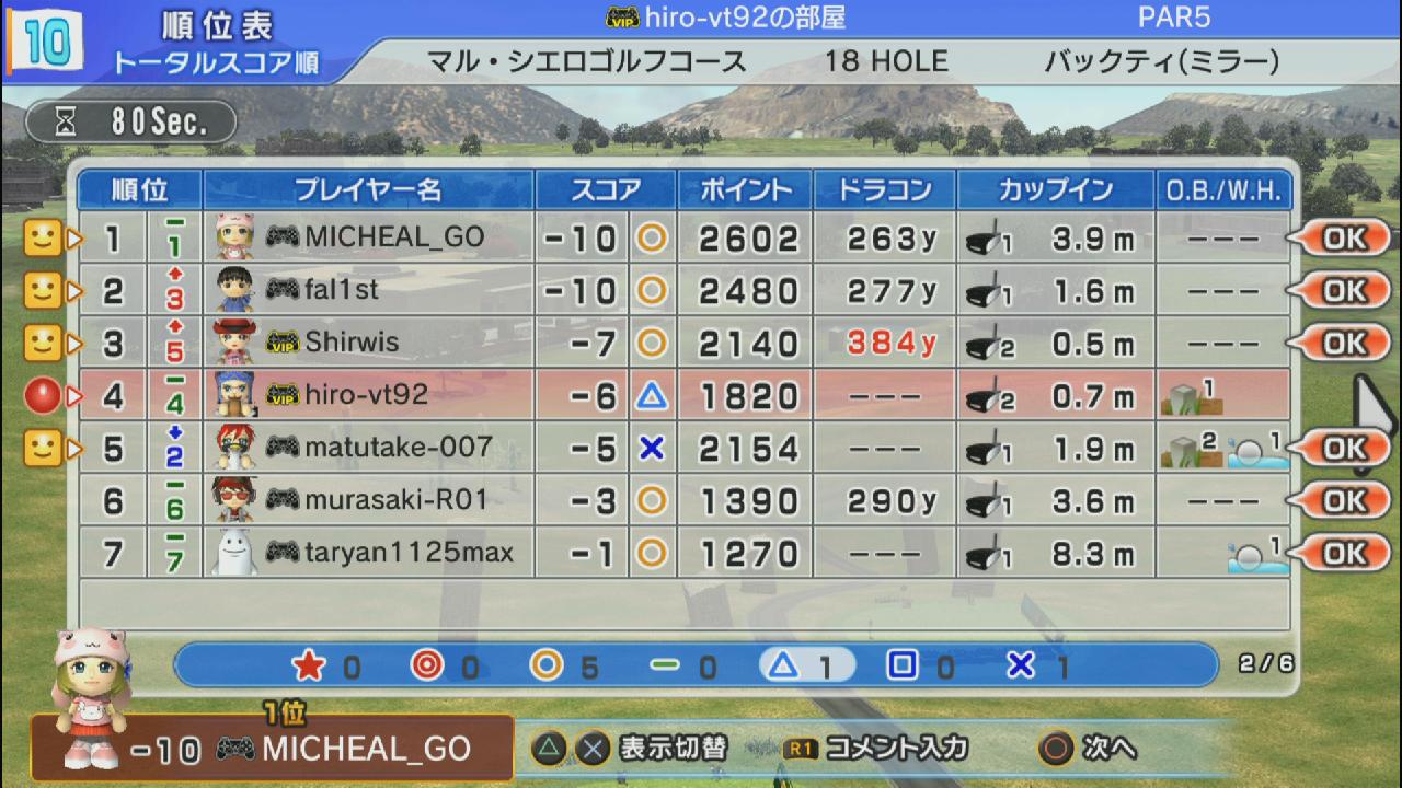 オンした人の中でバーディだったのはよもぎさんだけ。