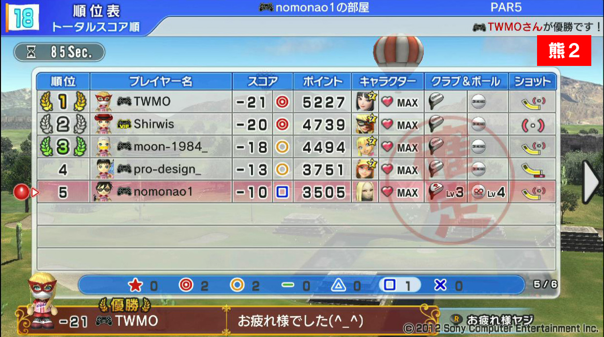 ひろうち92tの他、まつたけさんとリョウさんもイーグルを決めています。