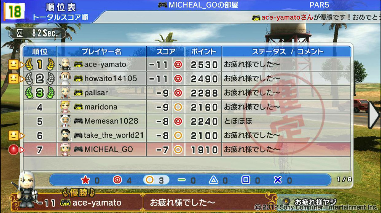 ひろうち92tトップ > みんゴル日誌 > みんゴル6 > 対戦部屋記録 2015年10月5日号