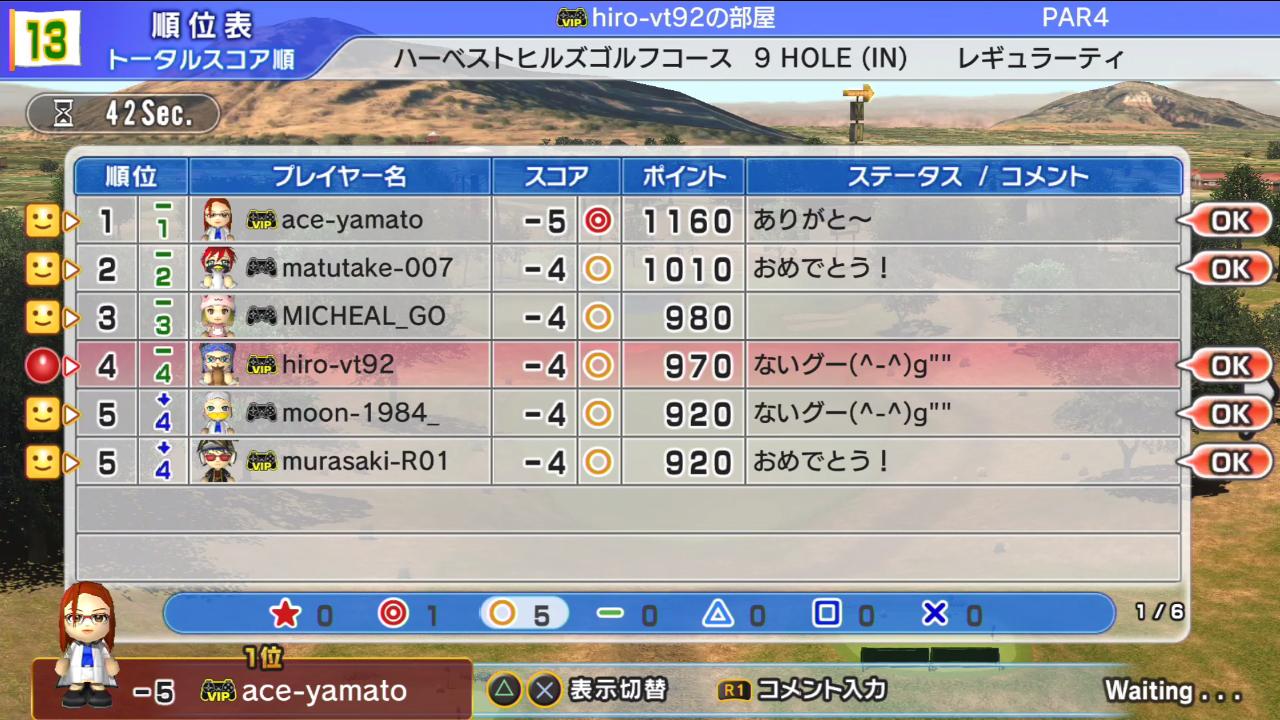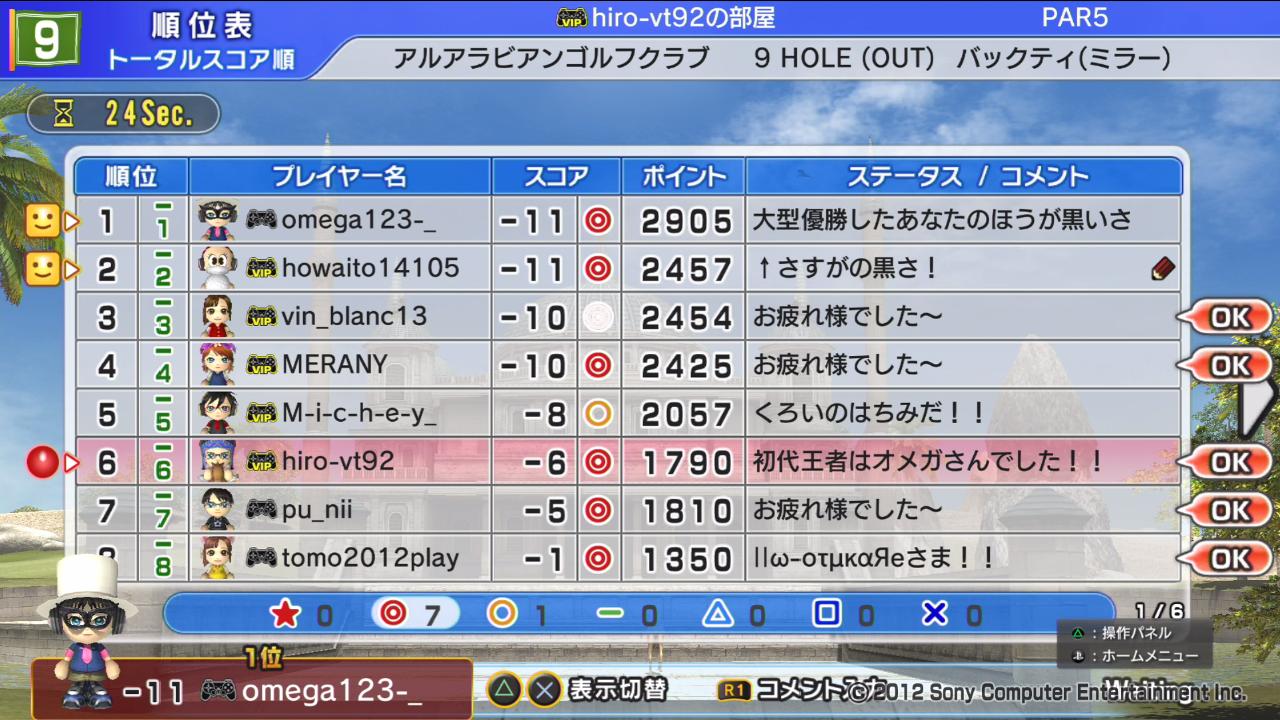ひろうち92tトップ > みんゴル日誌 > みんゴル6 > 対戦部屋記録 2015年11月16日号