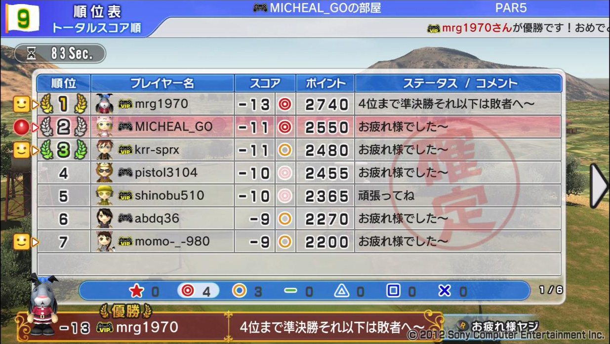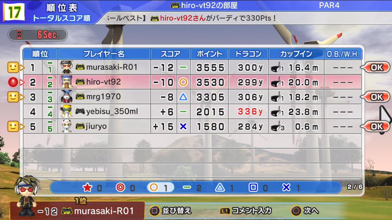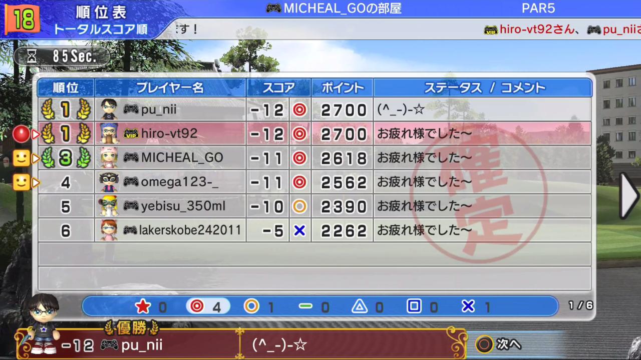 ひろうち92tトップ > みんゴル日誌 > みんゴル6 > 対戦部屋記録 2015年12月7日号