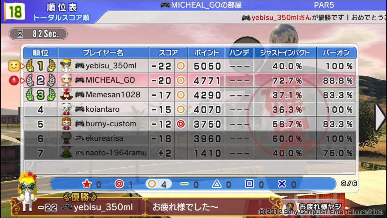 最後はパトラッシュさんがキッチリとバーディで締めて勝負あり!