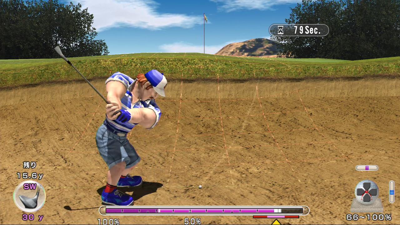 さらに次の14番も天然ウサギでティーショットをバンカーに入れた挙句、そこからの