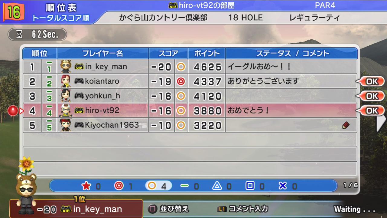 ひろうち92tトップ > みんゴル日誌 > みんゴル6 > 対戦部屋記録 2016年1月25日号
