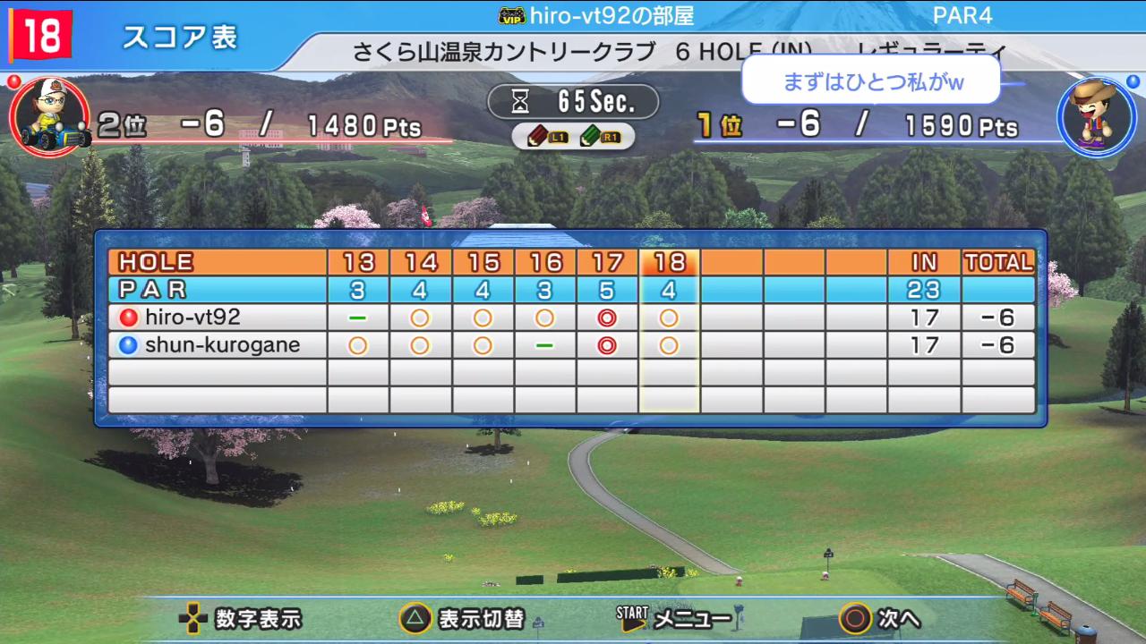 チャットルームでコメント中に対戦部屋開始になり、1番ホールがスタートになった