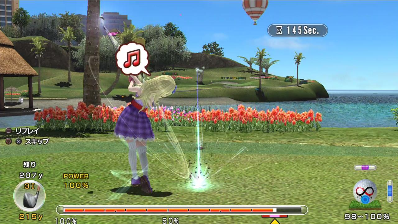 かったんがボールを海へと沈め、このホールでは唯一のパー…