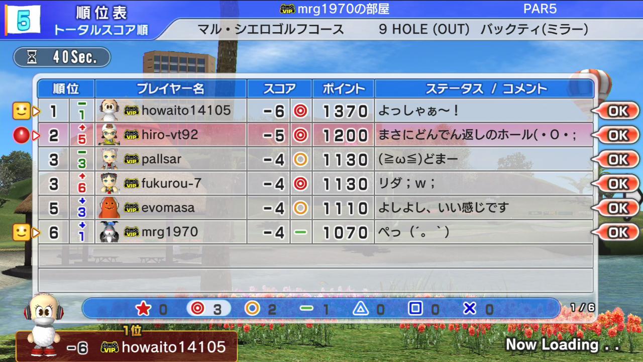 ひろうち92tトップ > みんゴル日誌 > みんゴル6 > 対戦部屋記録 2016年3月14日号