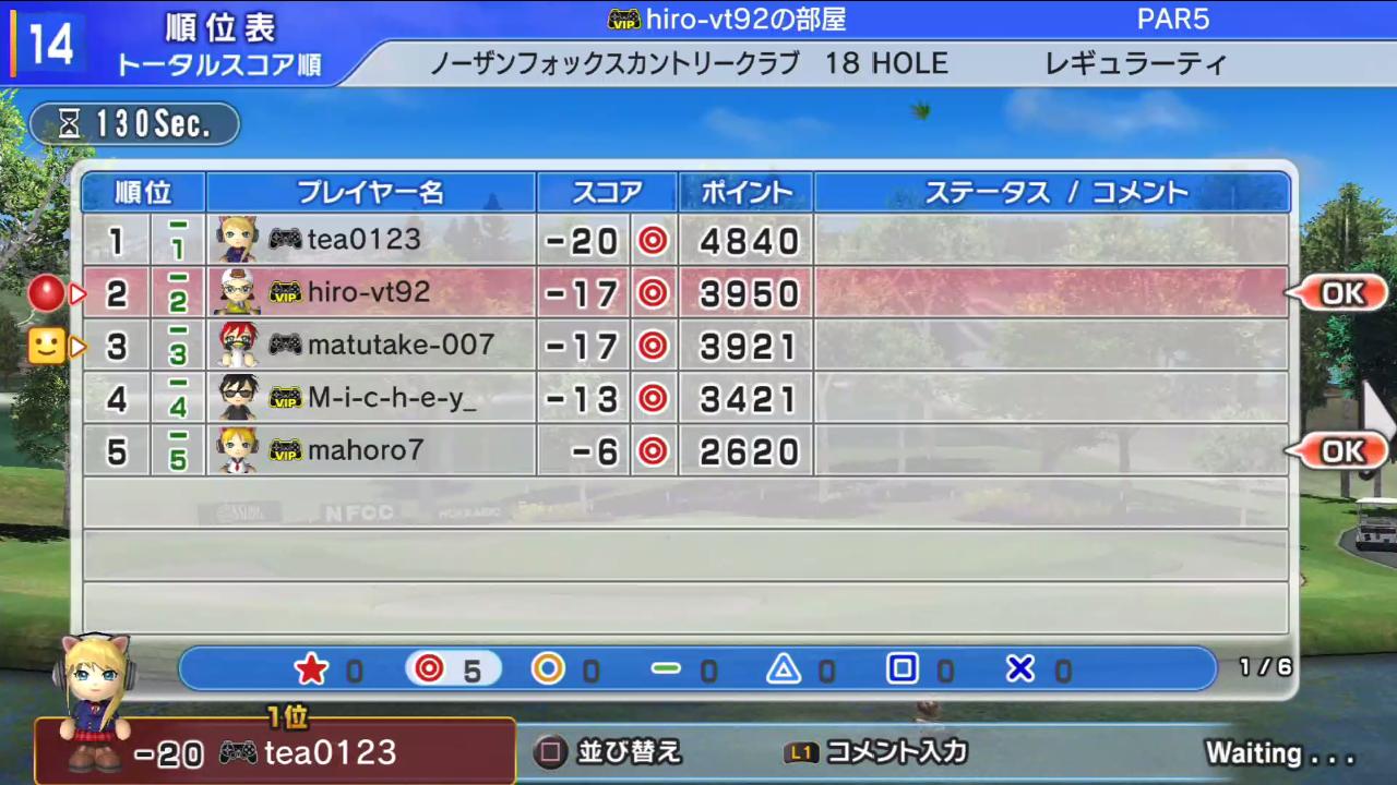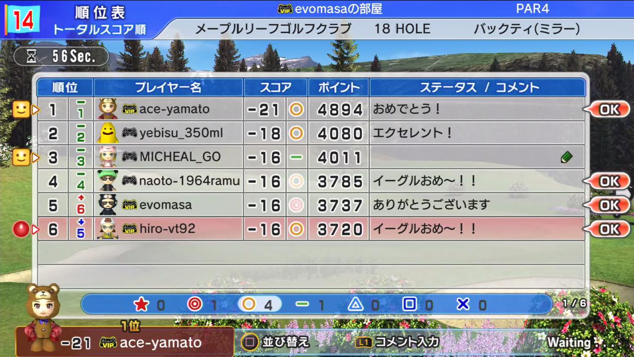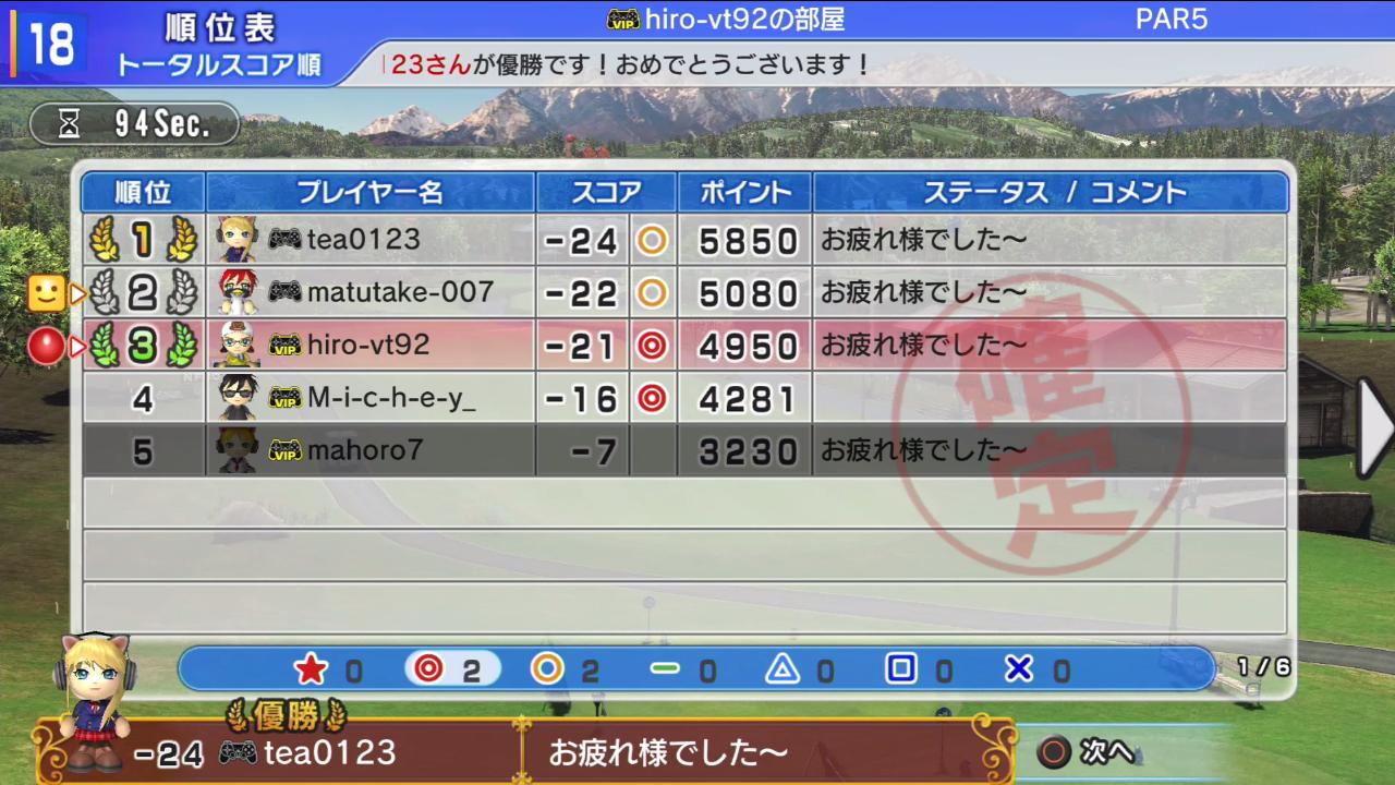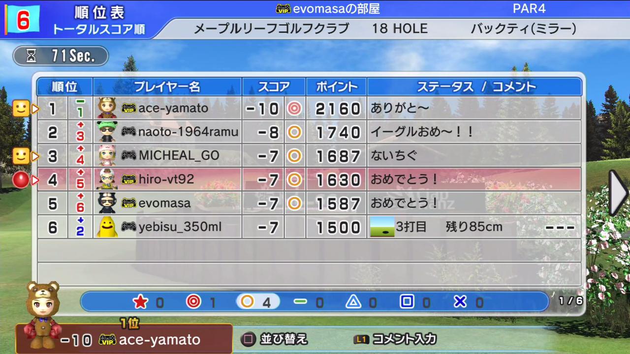 ひろうち92tトップ > みんゴル日誌 > みんゴル6 > 対戦部屋記録 2016年3月21日号
