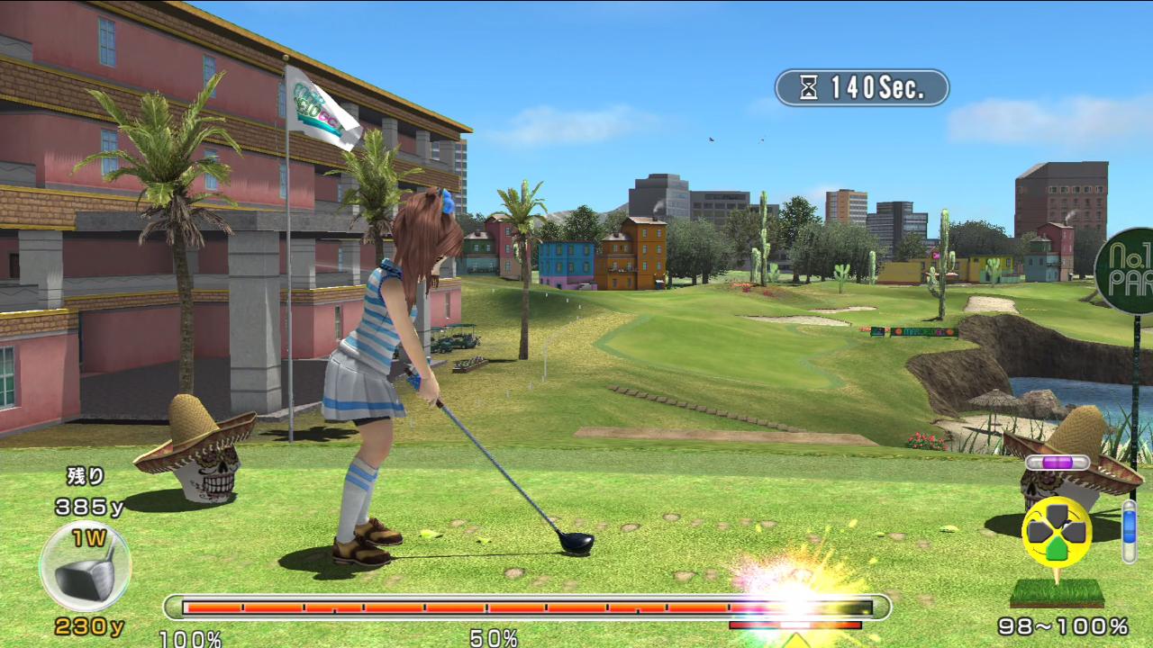 2番ホールはパワーを使用し、さらにトップスピンをかけてバンカー左のフェアウェイ