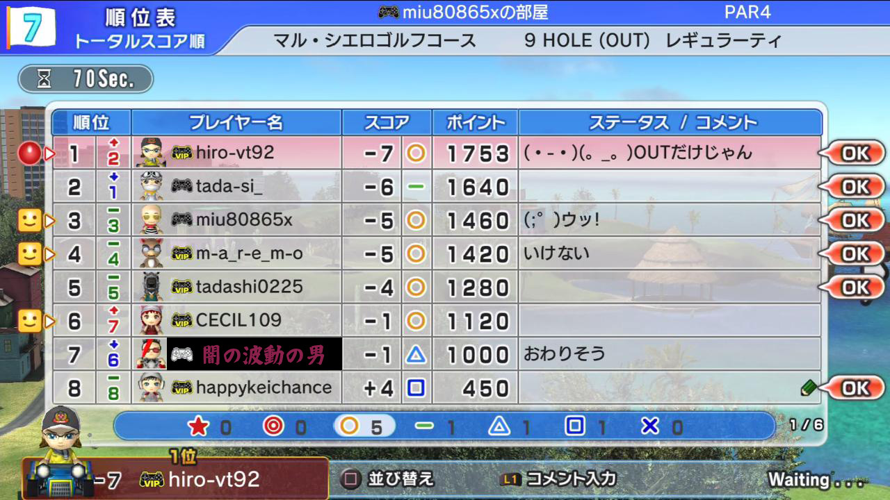 7番ホールは下位5人はいずれもパー以下で、特にりゅうじんさんとパルサーさんの