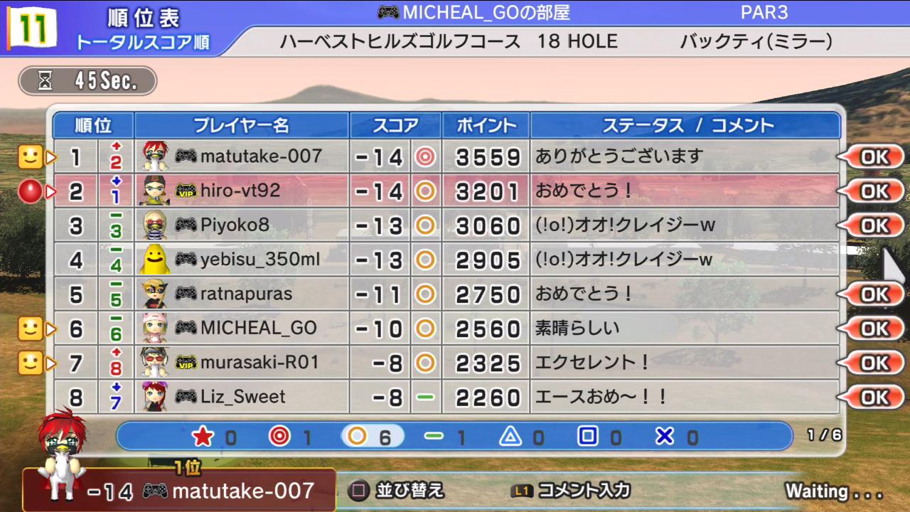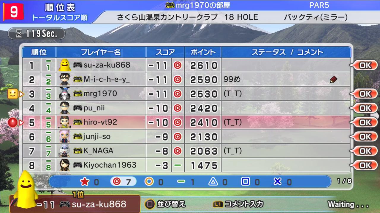 ひろうち92tトップ > みんゴル日誌 > みんゴル6 > 対戦部屋記録 2016年5月30日号