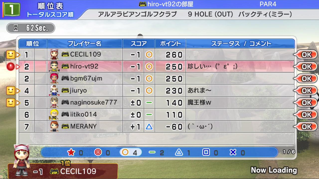ちなみにひろうち92tを除く他の皆さんはちゃんとバーディで上がっています。