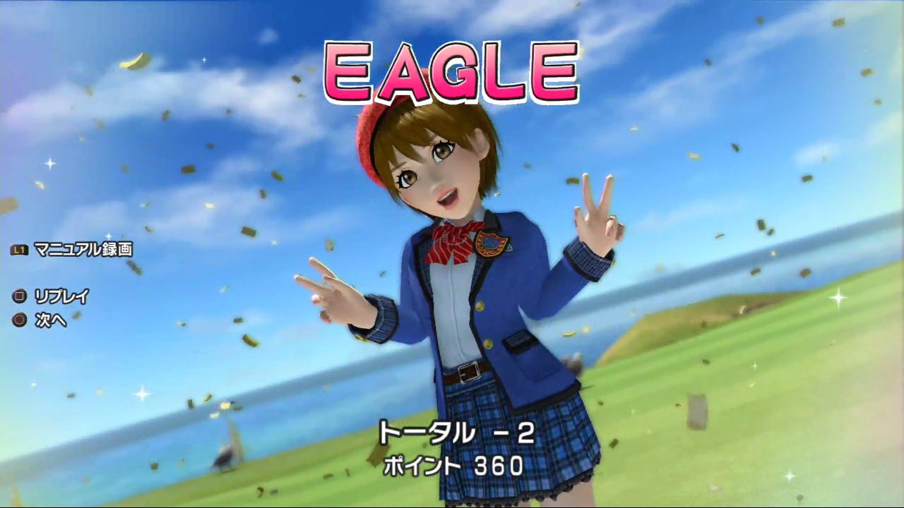慣れていたこともあり、問題なく2打とも狙い通りの位置に運び余裕のイーグルに!