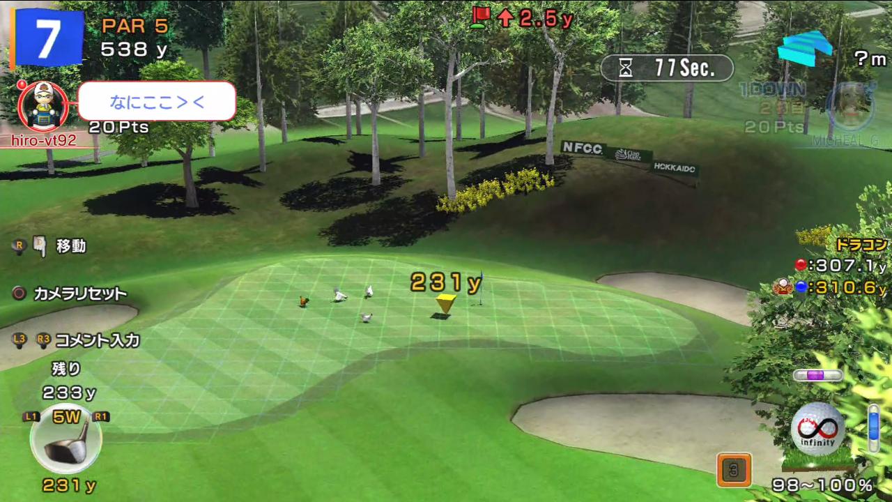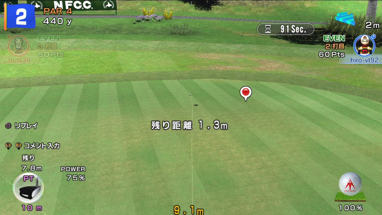 ひろうち92tが先にグリーンオンさせベタピンに…「また引き分けかな〜?」と
