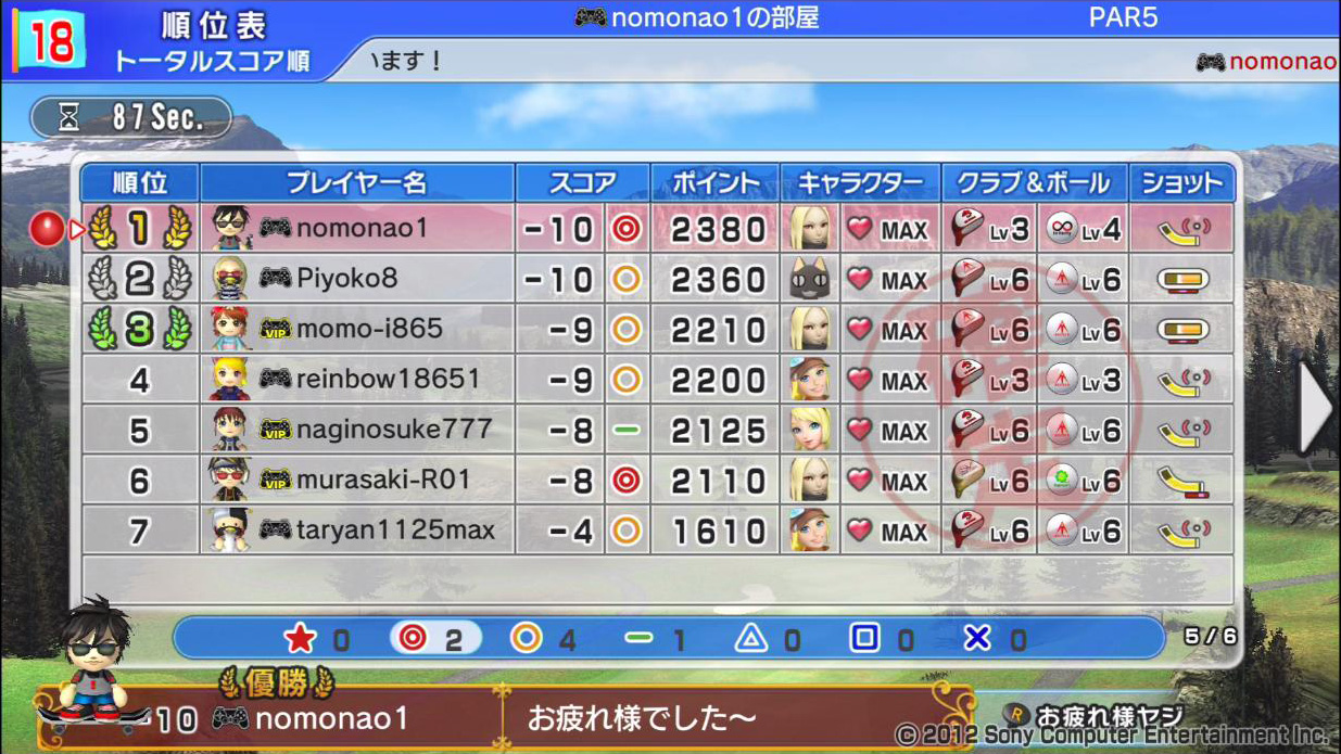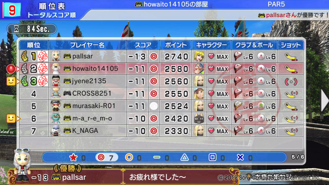 ひろうち92tトップ > みんゴル日誌 > みんゴル6 > 対戦部屋記録 2016年8月8日号