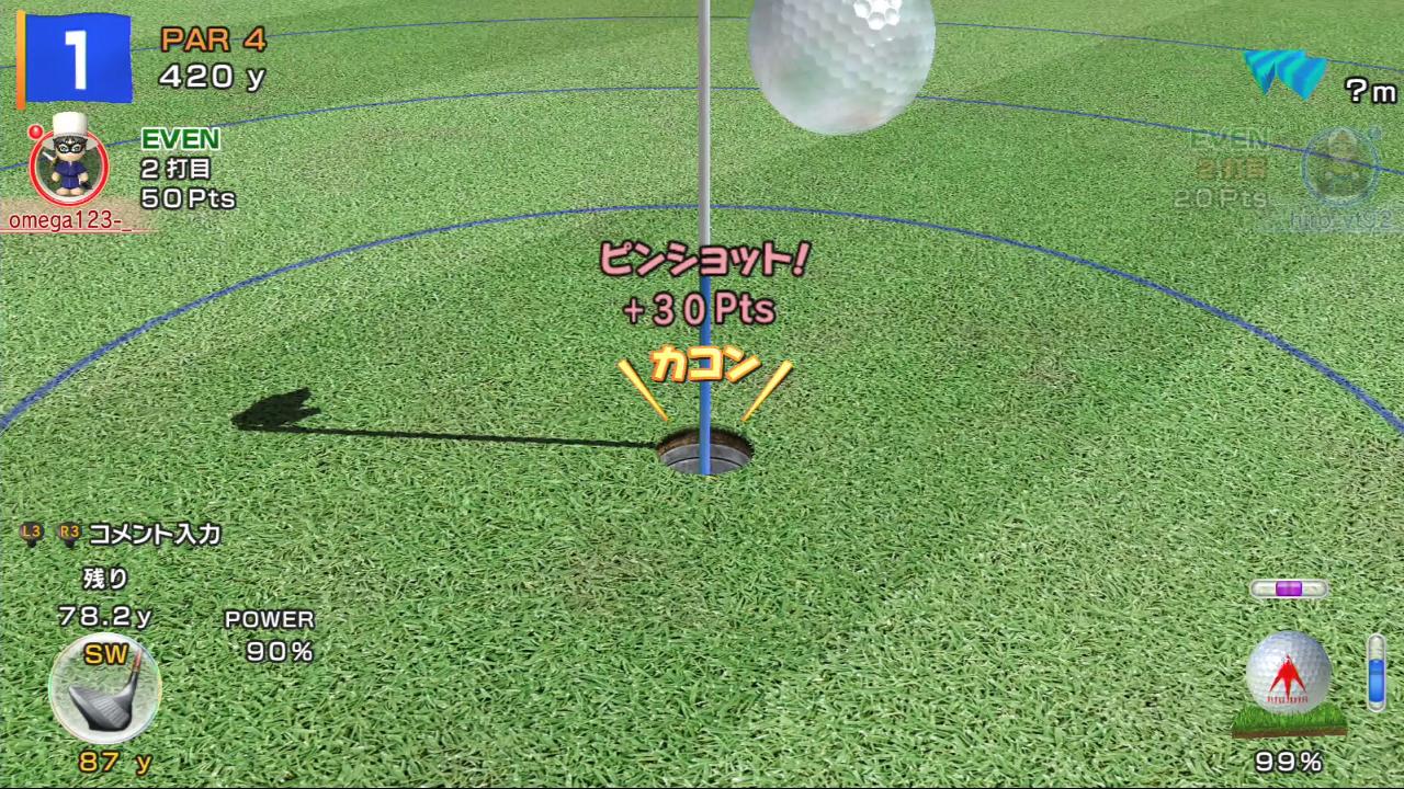 いきなりのチップインでイーグルを決めてくるオメガさん。