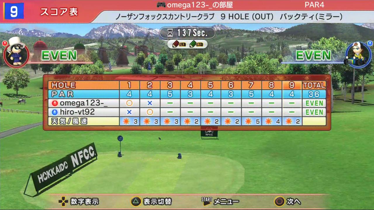 もちろん、ここはバーディ同士の引き分け…(゜-゜)