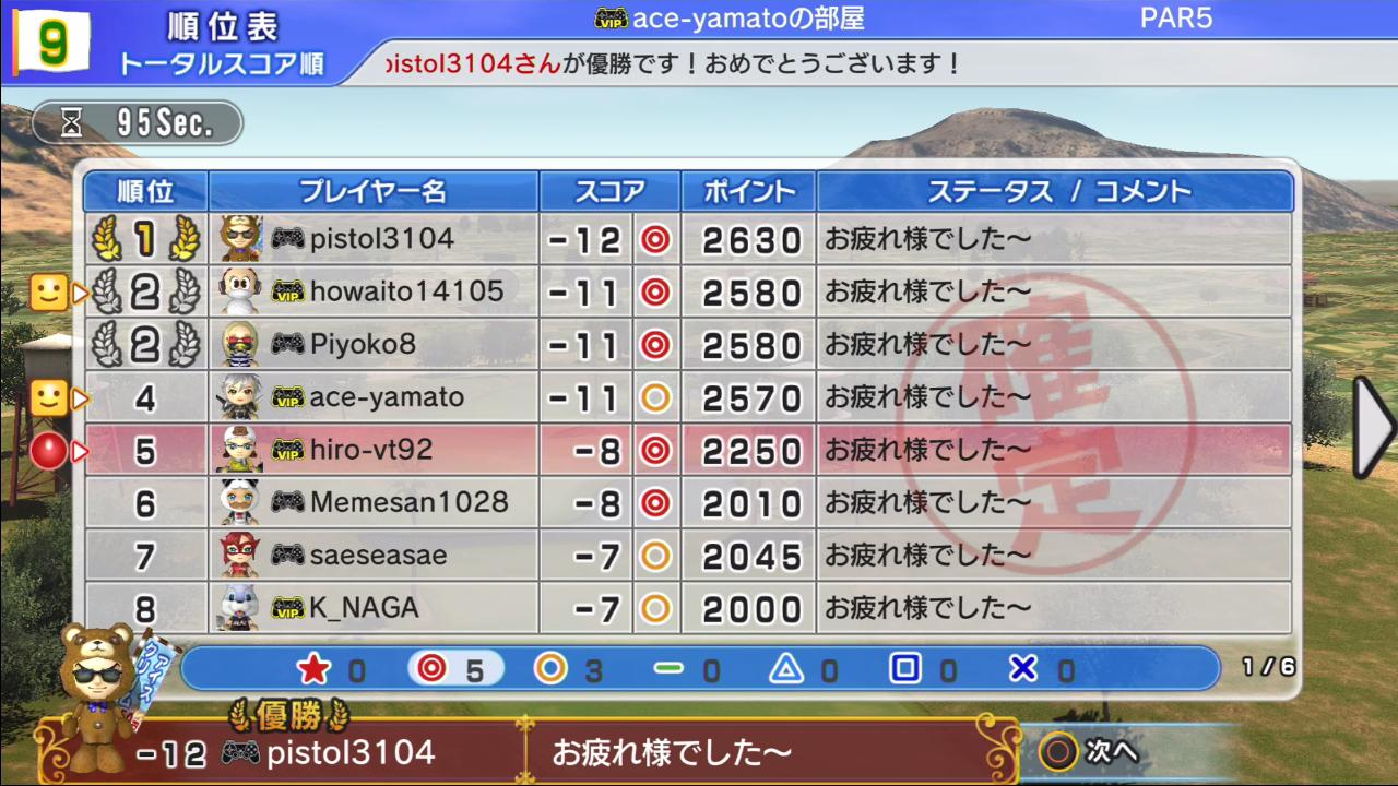 ひろうち92tトップ > みんゴル日誌 > みんゴル6 > 対戦部屋記録 2016年8月22日号