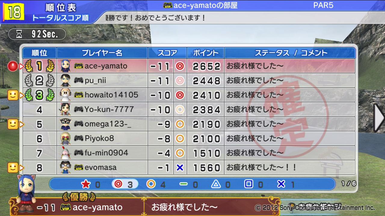 ひろうち92tトップ > みんゴル日誌 > みんゴル6 > 対戦部屋記録 2016年9月5日号