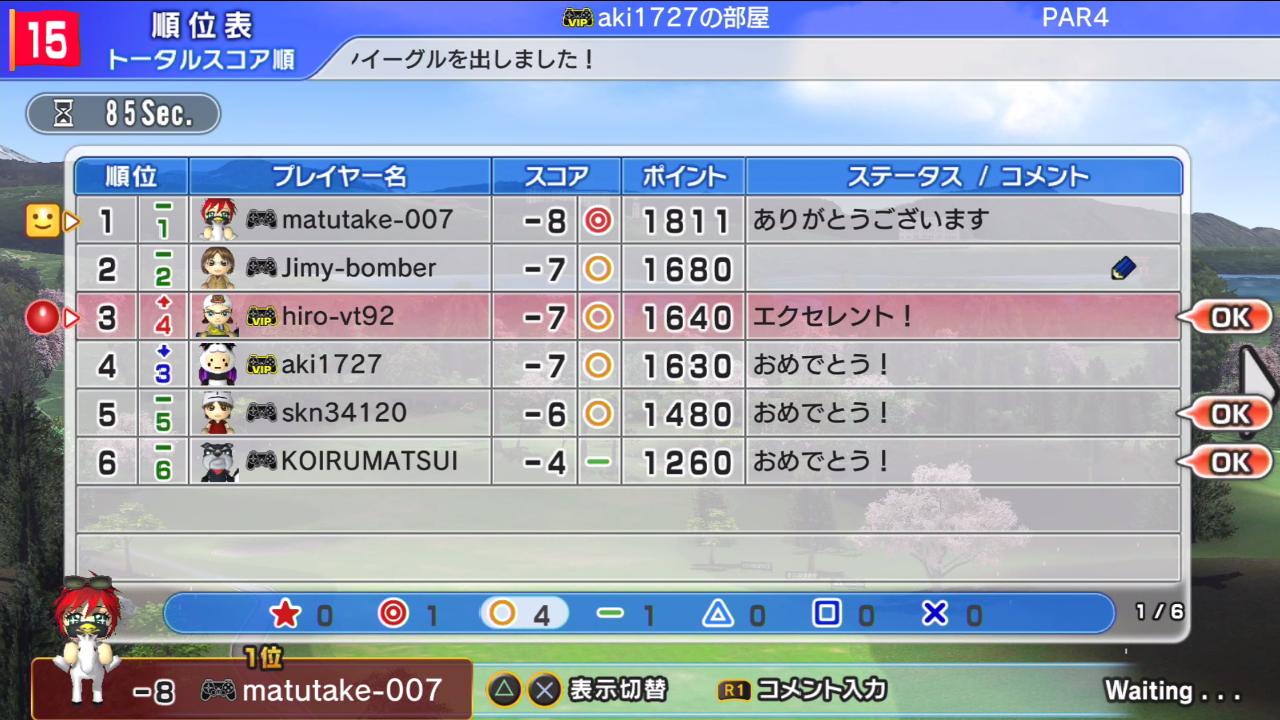 しかし、思った以上にイーグルが多く、6人中4人がイーグルという状態!