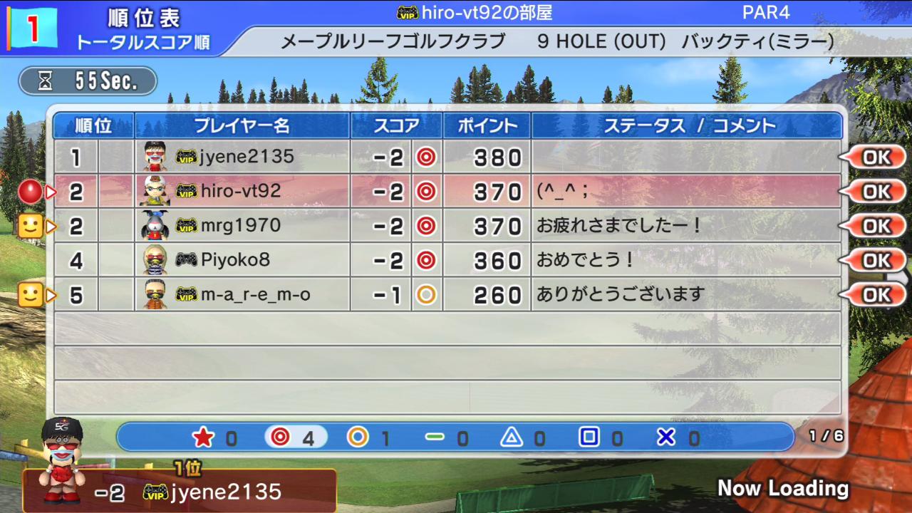 ひろうち92tトップ > みんゴル日誌 > みんゴル6 > 対戦部屋記録 2016年9月26日号