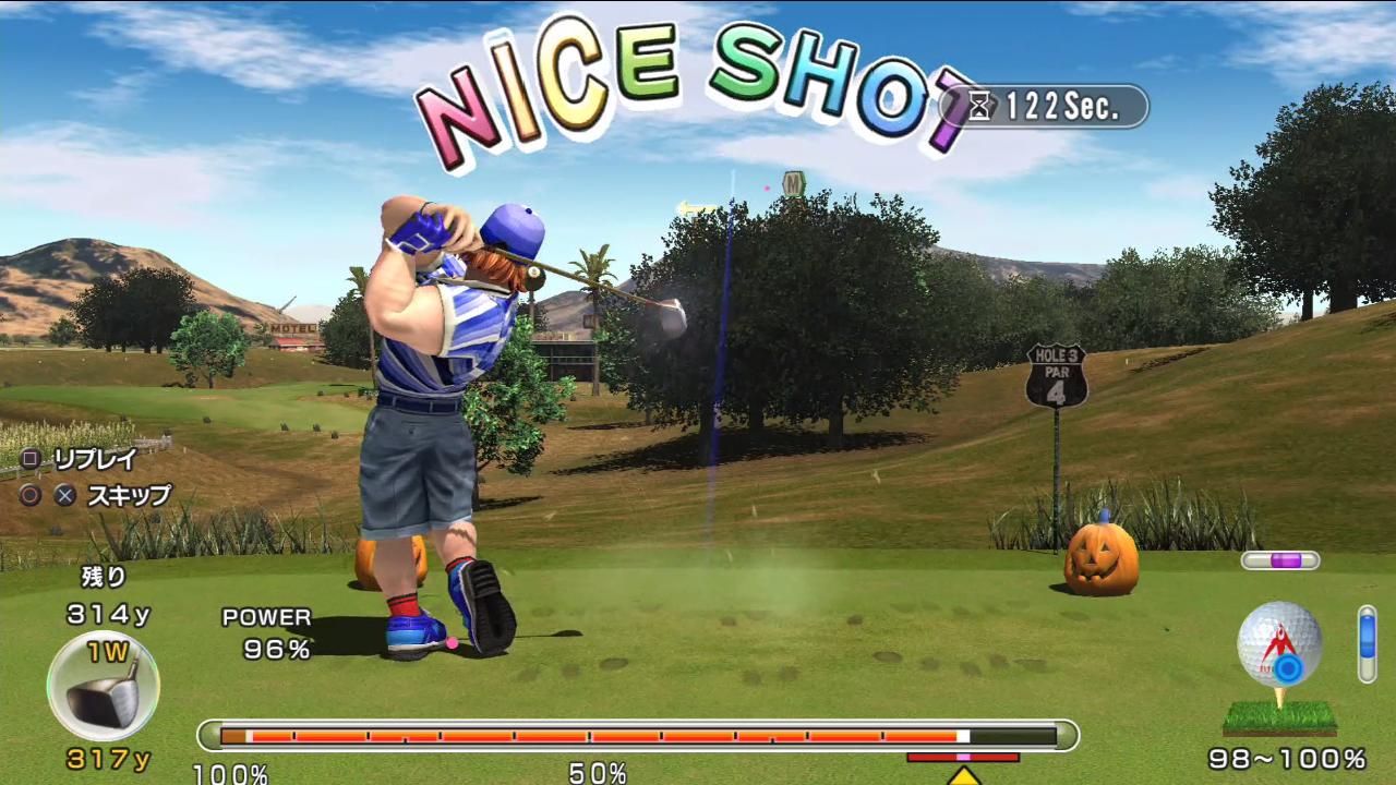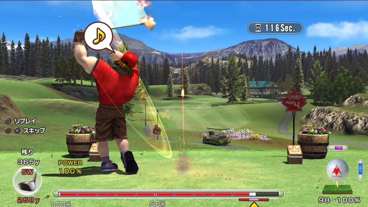 ティーショットは全力で飛ばし、ラフの先のフェアウェイまで狙います。