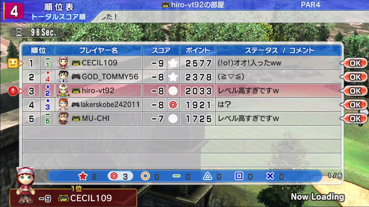 ひろうち92tトップ > みんゴル日誌 > みんゴル6 > 対戦部屋記録 2016年10月10日号