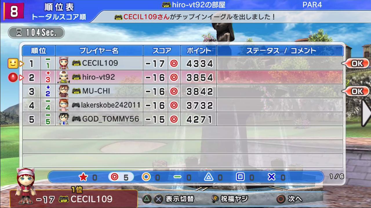 全員がイーグルで、チップインさせた人が結局は優勢になっていますw( ^ω^ )