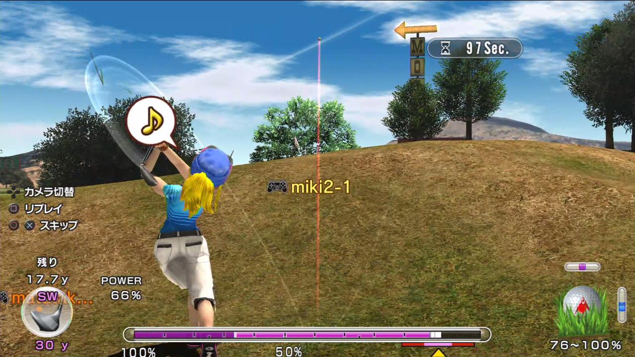 グリーン上で停止することなく、そのままグリーンを素通りしてラフへ(´・ω・`)
