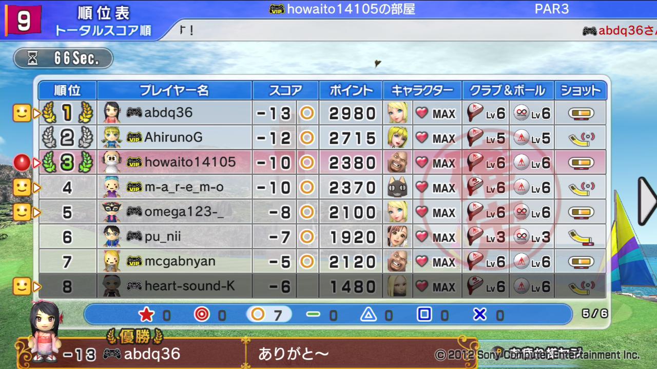 ひろうち92tトップ > みんゴル日誌 > みんゴル6 > 対戦部屋記録 2016年12月5日号