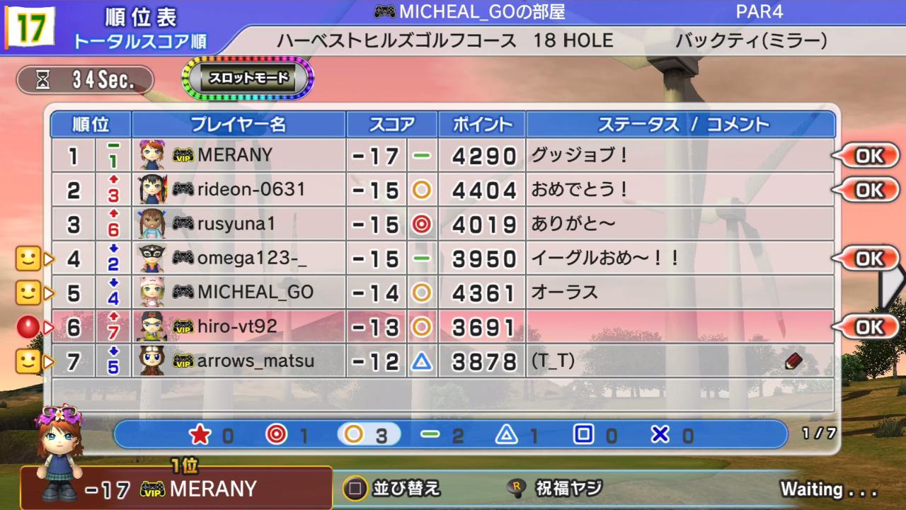 ひろうち92tトップ > みんゴル日誌 > みんゴル6 > 対戦部屋記録 2017年2月27日号