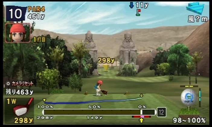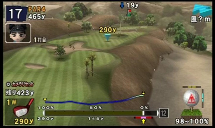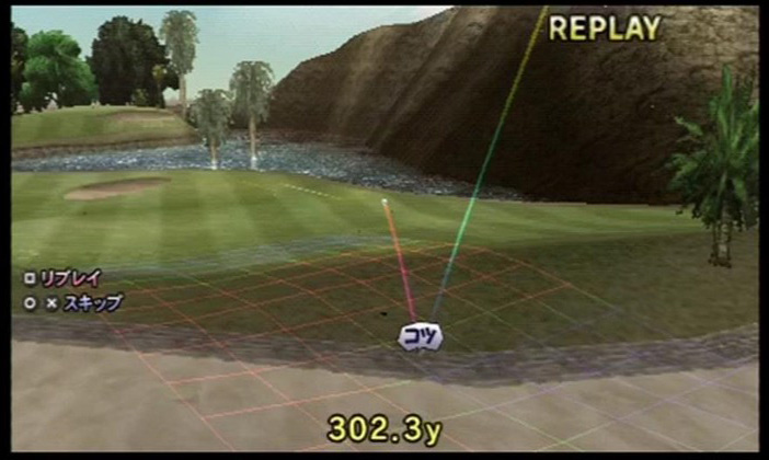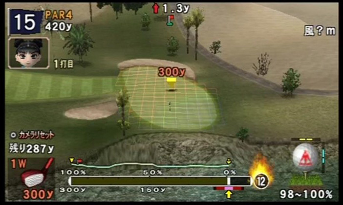 ↑ 狙いどころが右にズレすぎるとかえって危険。1打目はバンカーを正面にする辺りで良い