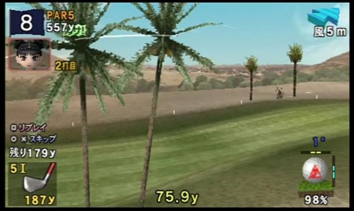 グリーンまでの距離もかなりあり、ミュウの場合はロングアイアンが必須…